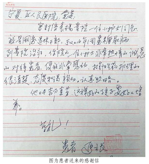 12月28日,一位79岁高龄老人送来感谢信,信中这样写道:护士郝素芳热情诚恳,和蔼亲切,认真细致,对待我就像家人一样,我真的很感动!短短几句话饱含了老人由衷的感谢。