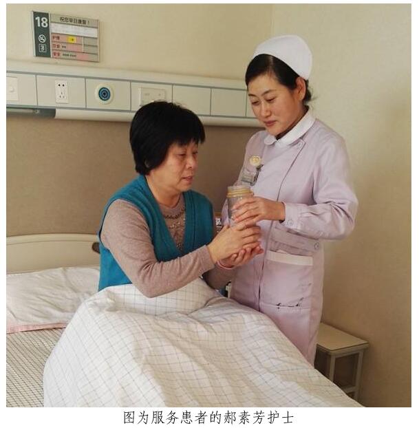 护理部李玲主任说:“像郝素芳这样的好护士全院还有很多,她们都在各自平凡的岗位上用规范服务让患者宽心,用诚挚的服务让家属满意,用点滴关怀让医患和谐。医院今年9月“护理服务与质量提升工程”开展至今,着力强化“三基三严”培训,开展职业礼仪与沟通技巧再培训,涌现出一批“作风正、服务实、技术精、形象佳”的优秀护士,护理服务质量的提升取得初步的成效。