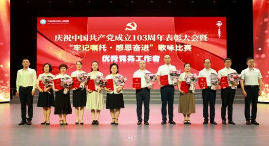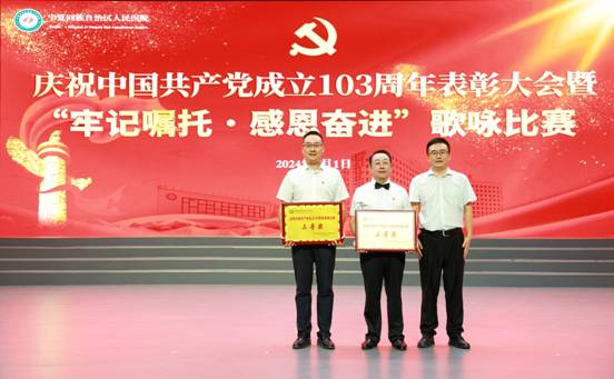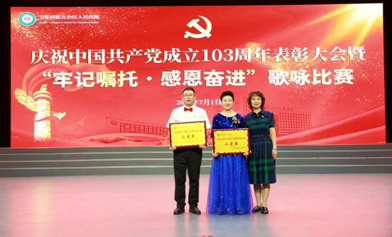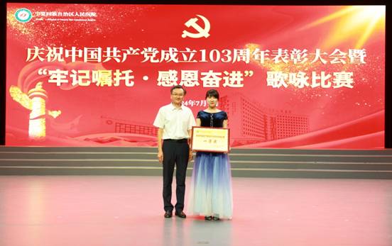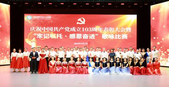 为庆祝中国共产党成立103周年,2024年7月1日,医院党委隆重举行庆祝中国共产党成立103周年表彰大会暨“牢记嘱托·感恩奋进”歌咏比赛。自治区卫生健康委直属机关党委专职副书记王书铎应邀出席会议。医院党政领导班子成员、护士长及以上干部、受表彰代表、老党员代表及各党总支、党支部演职人员等近600人参与活动。