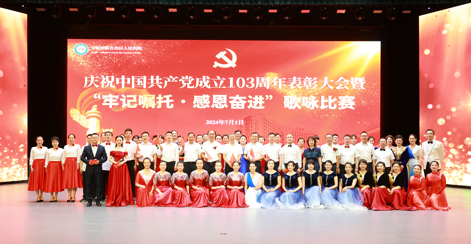 2024年7月1日,医院党委隆重举行庆祝中国共产党成立103周年表彰大会暨“牢记嘱托·感恩奋进”歌咏比赛