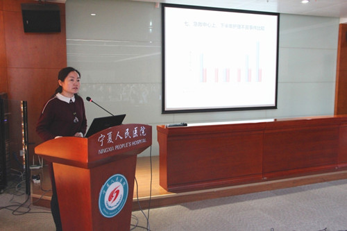 图为护理部副主任张桂秋汇报
