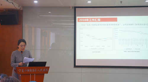 在五市二级质控中心工作交流环节,银川市护理质控中心主任杨丽娜详细汇报了银川市护理质控中心2018年度工作,畅谈二级质控中心工作心得和收获体会。