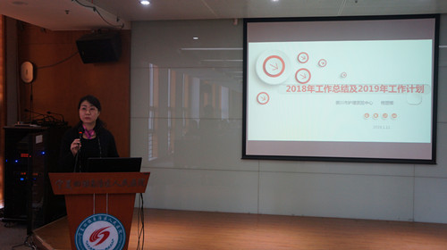 图为宁夏护理质控中心办公室主任李海霞汇报工作