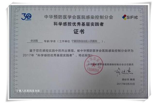 本次大会评选出了109名“科学感控优秀基层实践者”,余淑霞获得该奖项是对我院医院感染管理团队和个人工作的极大肯定,宁夏人民医院感染管理科在区内外的形象得到进一步提升。